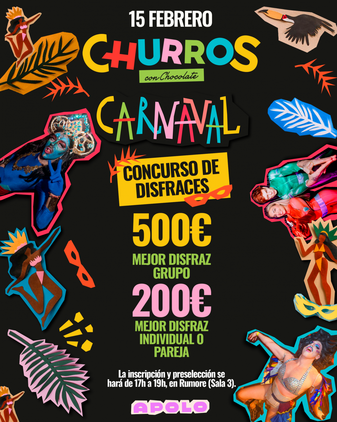 Este Carnaval en Sala Apolo no vengas sin disfraz porque hay premios 🎭 Si quieres participar en nuestro concurso de disfraces tendrás que venir a inscribirte en la sala Rumore (la terraza) de 17h a 19h. 🤡