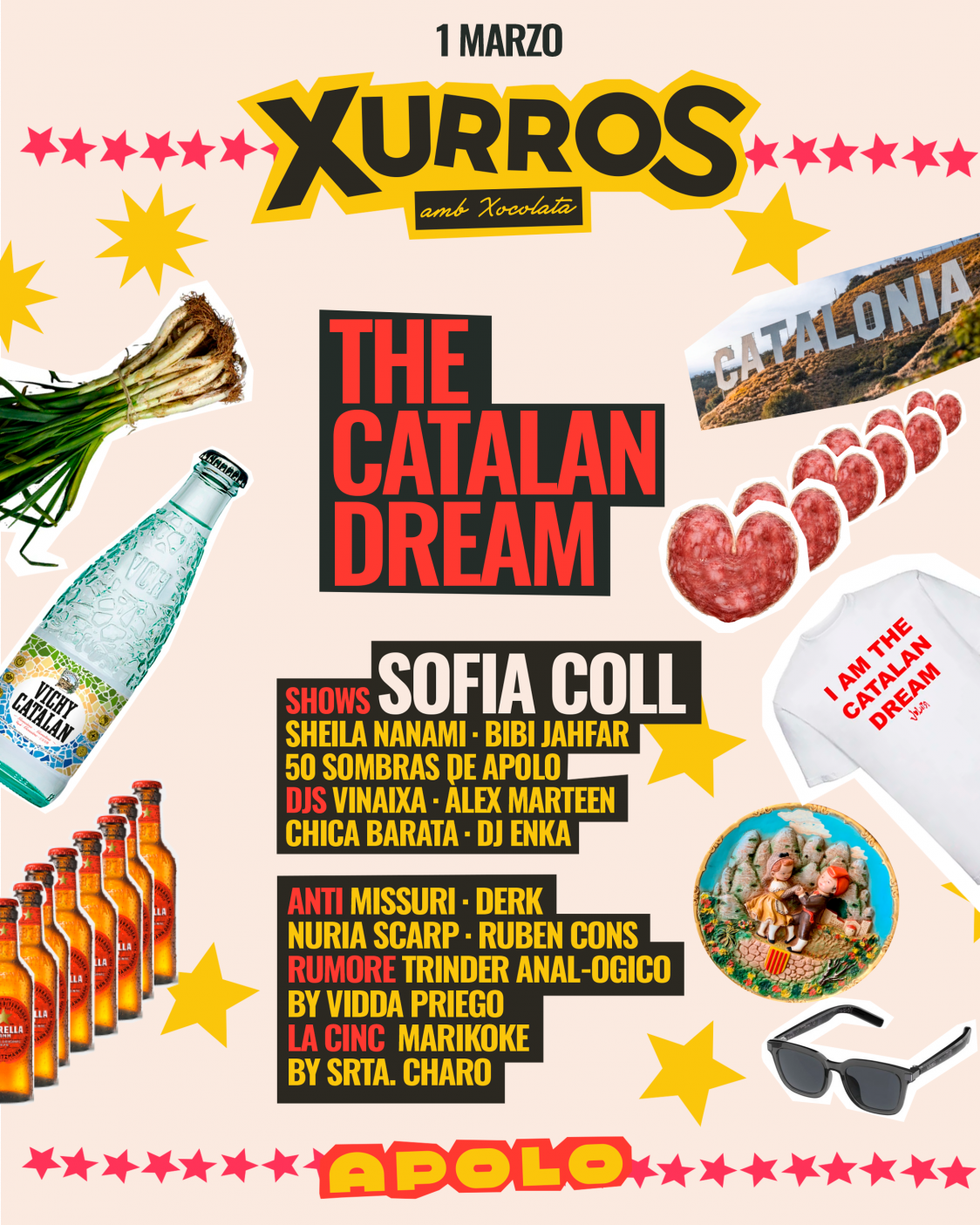 🌊El 1 de marzo XURROS THE CATALAN DREAM amb Sofia Coll en Sala Apolo🏔️ ¡Ni rastre del seny, avui e rauxa! 🤪 Juntémonos para celebrar la nostra terra i ballar amb les nostres dives catalanes ✨ Y en ANTI te daremos fuet del dur hasta el amanecer 🤤