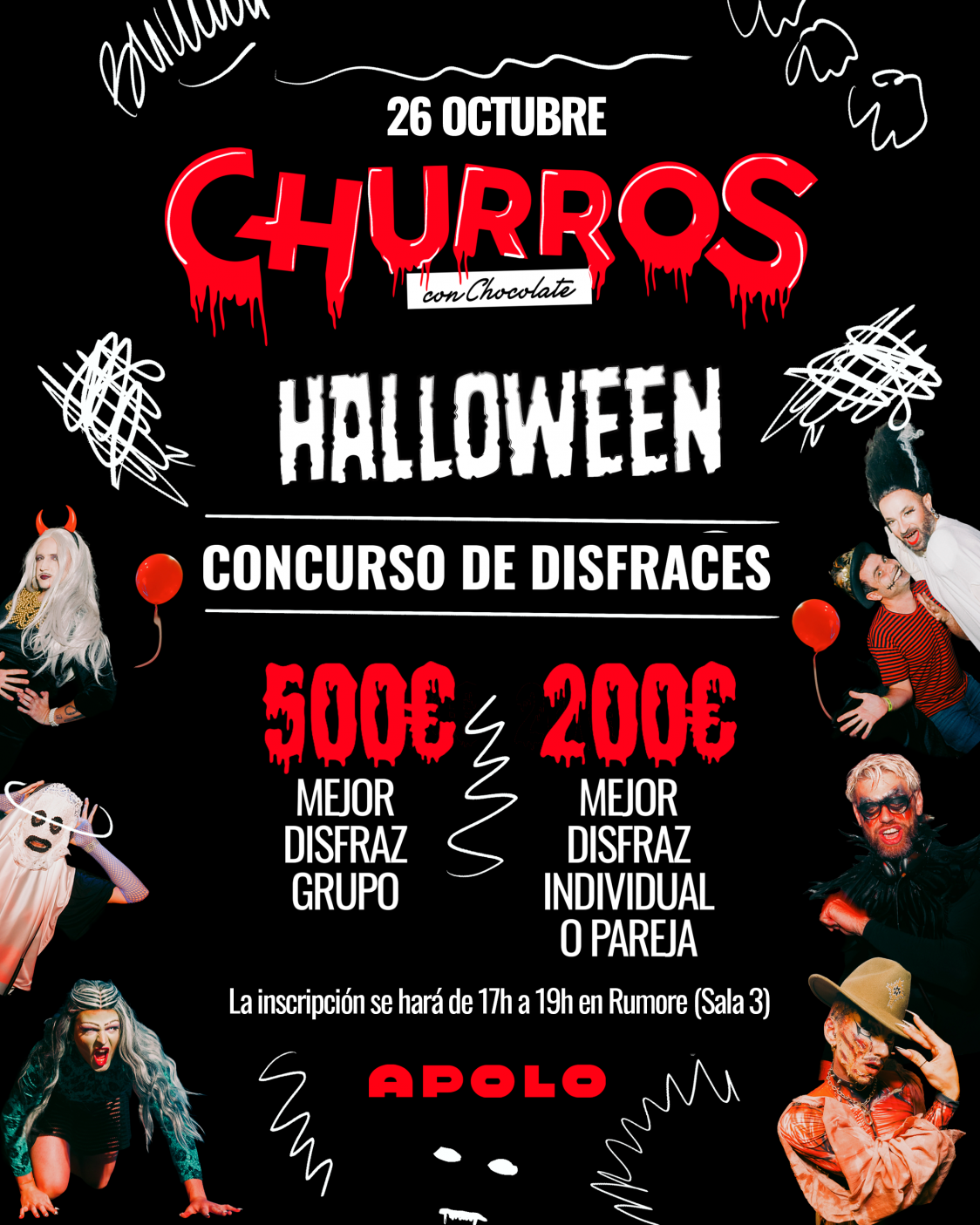 Este Halloween en Sala Apolo no olvides tu disfraz más terrorífico porque hay premios 🎃 Si quieres participar en nuestro concurso de disfraces tendrás que venir a inscribirte en la sala Rumore (la terrraza) de 17h a 19h. 👻